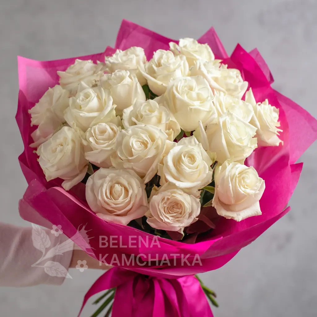 Композиция, отражающая искренность, нежность и заботу. Белые розы в этом букете говорят без слов — о чувствах, которые не нуждаются в объяснении. Универсальный выбор для самых разных поводов.