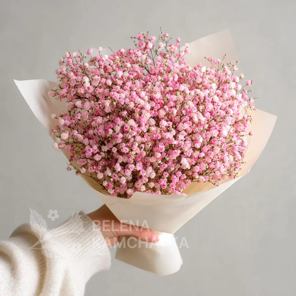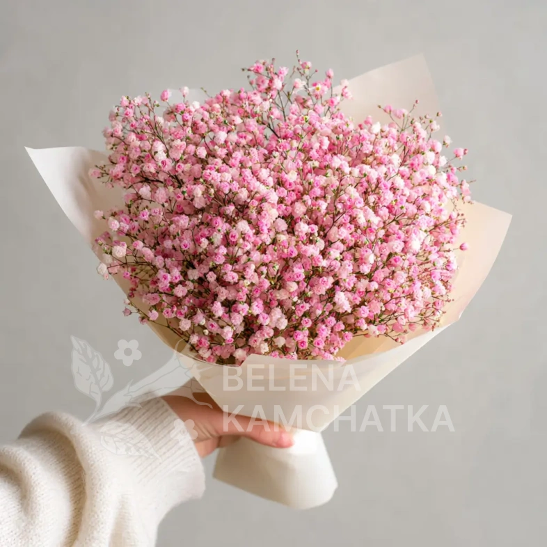Гипсофила в этом букете будто плетёт кружевную вуаль. Изящный, воздушный и очень женственный. Подойдёт для подарка любимой, маме или коллеге.