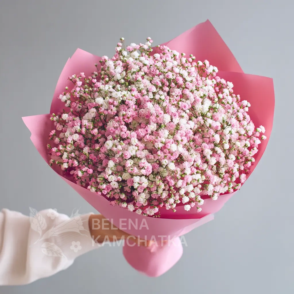 Светлая композиция с лёгким сиянием, идеально подходящая для подарка в утренние часы. Гипсофила в этом букете словно мерцает, подчёркивая лёгкость и стиль.