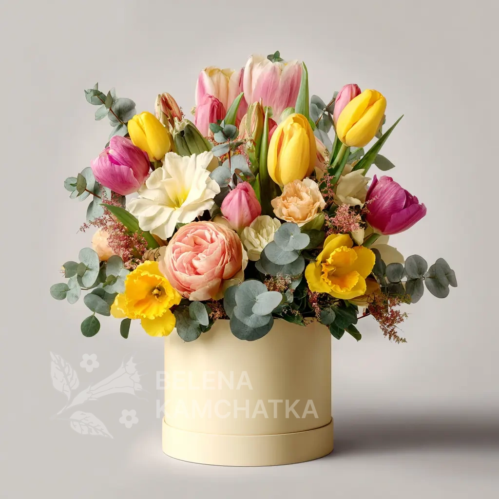 ГлавнаяКаталогКомпозицииВ шляпной коробкеКомпозиция «Весеннее вдохновение»