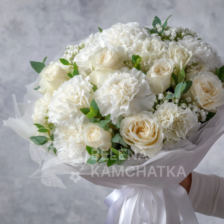 ГлавнаяКаталогБукетыГвоздикиБукет с гвоздиками «Белый вальс»