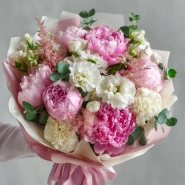 ГлавнаяКаталогБукетыПионыБукет с пионами «Пудровая нега»