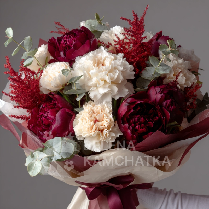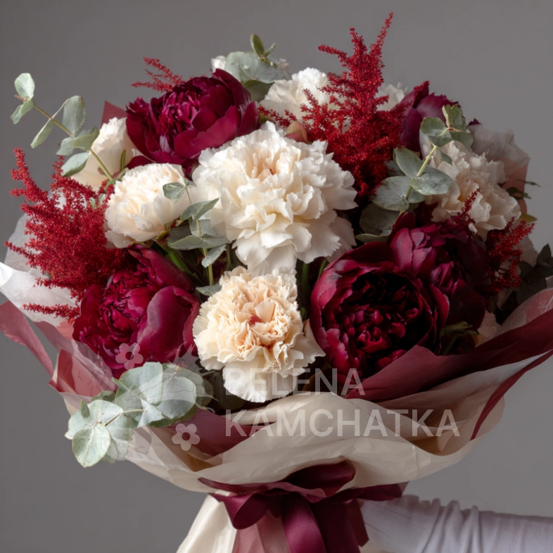 ГлавнаяКаталогБукетыПионыБукет с пионами «Бархатный шелест»