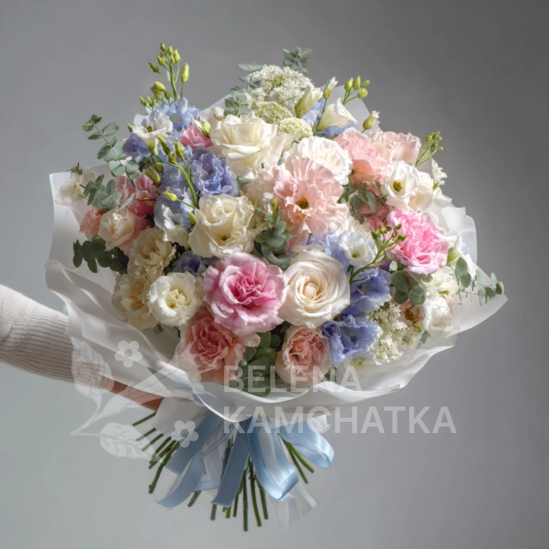 Свежий и чувственный букет с эустомами пастельных оттенков. Он словно вдох новизны — лёгкий, весенний, чистый. Прекрасен как для романтичного повода, так и для спонтанного знака внимания.