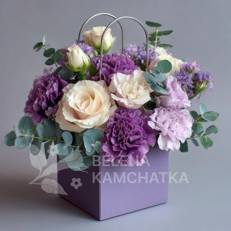 Современный флористический тренд: букет в стильной сумке с яркими нотами цвета и лёгкого аромата. Создан для модниц и тех, кто любит дарить стиль.