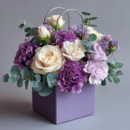 ГлавнаяКаталогКомпозицииВ сумочкахЦветы в сумочке «Модный аромат»
